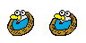Baby PiT's has a blue and white egg shaped body resting in a brown nest. They have two large eyes and a yellow spout that forms their nose/mouth.
