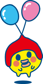 In his second form, he also has short arms and a red cap with two round balloons coming out, one blue and one pink. He no longer has frills around his waist.