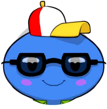 Coolgurutchi is a blue Tamagotchi with a wide head and slimbody. He has black oval eyes and pink cheek highlights. He wears a white, red, and yellow striped cap, black sunglasses, and a green jacket.