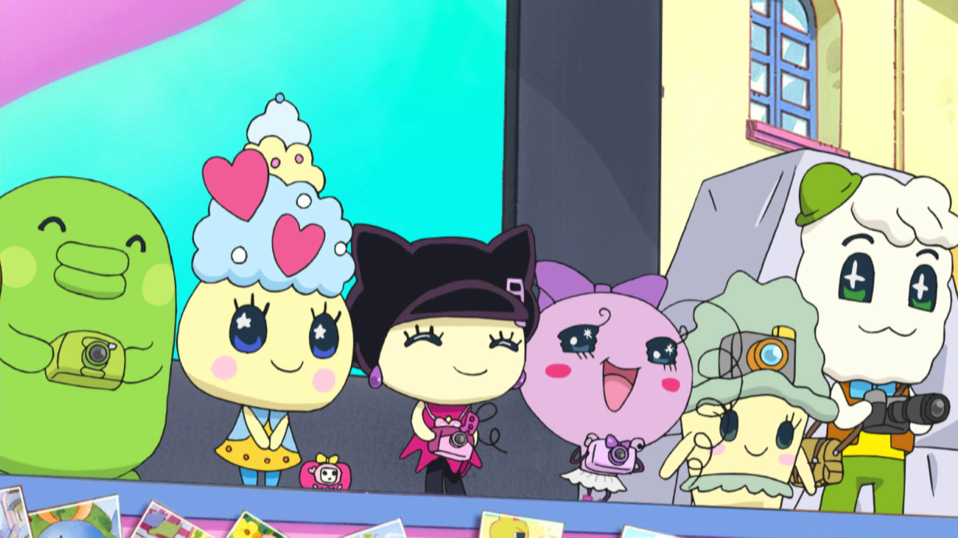 Mametchi decides to take multiple photos of Gotchiman as he poses on a stage. Kuchipatchi initially takes photos of Shinshitchi eating burgers before deciding to take pictures of himself enjoying the burgers instead. Near the Train Station, Memetchi sneakily watches as Makiko trips on the sidewalk and snaps a picture of the moment. Elsewhere on Tama Street, Moriritchi walks down the street with Pashalin who is taking pictures of everything they pass by. Nachuratchi, Melodytchi, and Lovepapalitchi are seen doing the same thing. Back at the stage, Kuromametchi takes secret pictures of Lovelin and Telelin as they relax and wait for the contest to end.