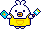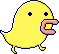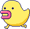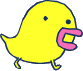 Dododotchi resembles a yellow bird with small eyes and a pink beak. Its body is shaped like a drop of water. It has two small skinny legs.