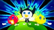 Meanwhile, Kuchipatchi has been eaten so much food, he has turned very large and fat. While Mametchi and Kuromametchi are competing, and finishing all the events at almost the same time as each other, Kuchipatchi falls and begins bouncing out of control like a rubber ball.