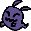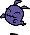 Ghost Deviltchi resembles a ghost with a dark violet body, narrow eyes, rounded horns, and a wriggling mouth. When she is sleeping, she resembles a bat upside down.