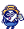 Sakumotchi is a costume transformation exclusive to the Dream to Change! Ribbon Deco Pierce on the P's. Gotchimotchi has tan skin and is sweating from being out in the sun gardening all day. His cheeks are now "E"s, somewhat resembling the symbol for Euros. He wears his usual blue shirt and white pants, but now dons a beige straw hat, brown boots, and either a white neck scarf or a shirt tied around his neck. He always holds a hoe in one hand, and he carries a straw basket on his back filled with carrots and either turnips or green onions.
