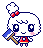 On virtual pets, he debuted in Japan on the Tamagotchi iD with the signature "M" on his hat--though, it was later removed in the Tamagotchi! anime when the tie-in with McDonald's ended, and it was not present on his next appearance being the Tamagotchi On, which also happened to be his international debut.
