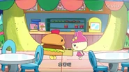Makdotchi is seen working the McDonald's in Celebria while the main protagonists' families eat there.
