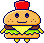 Happyburgertchi is an NPC who can appear when using Space Travel to visit the Foodie Planet. He gifts the user a food-related accessory which can be used to decorate the New Tamagotchi Planet.