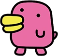 Hashizoutchi has a pink, bean-shaped body, a yellow bill, stubby arms and legs, and a tail. In its US artwork, its body was red instead of pink. On the Tamagotchi L.i.f.e. app, it can also be dark pink or brown.