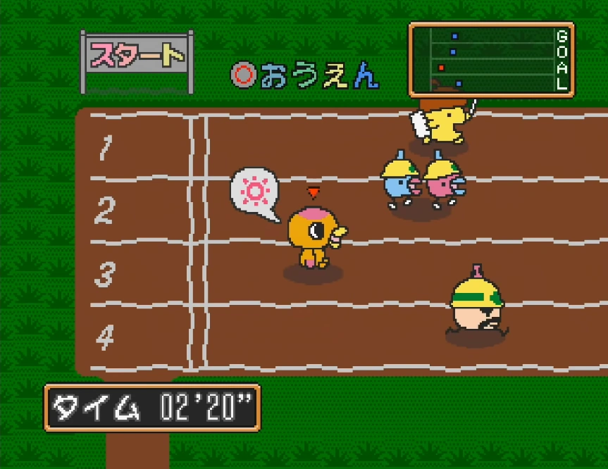 - Tamagotchi Relay: Similar to Tamagotchi Race, but the Tamagotchi tags another Tamagotchi halfway through the track