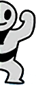 Kakuretchi has a grey body with large arms and legs. It wears a black belt and and scarf, and it has large, black eyes. Only half of its body is visible.
