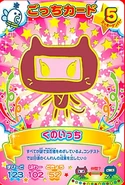 Kunoitchi is the worst care female character on even generations, evolving from either Chamametchi, Ichigotchi, or Ringotchi with severe neglect. The higher her stress level is, the higher chance she has of appearing. If her stress level is 99 and she receives severe neglect, obtaining her will be assured. She sleeps from 9.15pm to 8.00am.