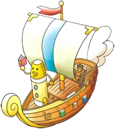 In "Mametchi's Picture Diary", Mametchi and friends encounter the ship high up in the clouds. They then board it and ride it above Tamagotchi Planet, inviting the viewer to visit the planet with them.
