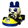 As with his fellow drivers, in addition to a standard kart (pictured), Mametchi has a specially-designed vehicle that slightly reduces acceleration in exchange for increased speed. Mametchi's specially-designed kart loosely resembles a Tamagotchi virtual pet that is pulled by a wheeled mechanical Tamagotchi wearing a Kasa.