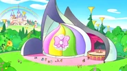 The largest building in the vicinity is the castle where the queen lives, which has a rainbow (resembling a musical stave) arcing over it. Melody Land is also the location of Idol Academy, where Tamagotchi can train to become idols.