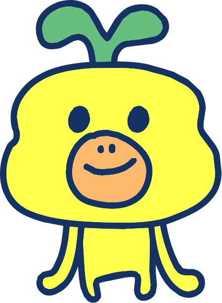 Monpatchi looks like a yellow monkey with long arms. He has an orange snout and green hair that looks like leaves on his head. As seen in the artwork in the gallery, his hair turns brown and droops when he's sad.