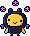 Morutchi is mostly black with a yellow face and arms. She has small black eyes, small black ears, and a small smile, and is always shown with pink flowers floating above her head. Morutchi also appears to have red heart shaped hair clips or ears on the sides of her head, which were later changed to be purple and wing-like in her 15th Anniversary Version sprite.