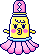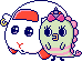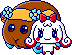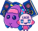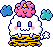 NemunemuUsatchi is an NPC exclusive to the Pastel version of the Tamagotchi Meets. She can be encountered at Easter Island. Her colors are toned to be more pastel and she has a blue outline.