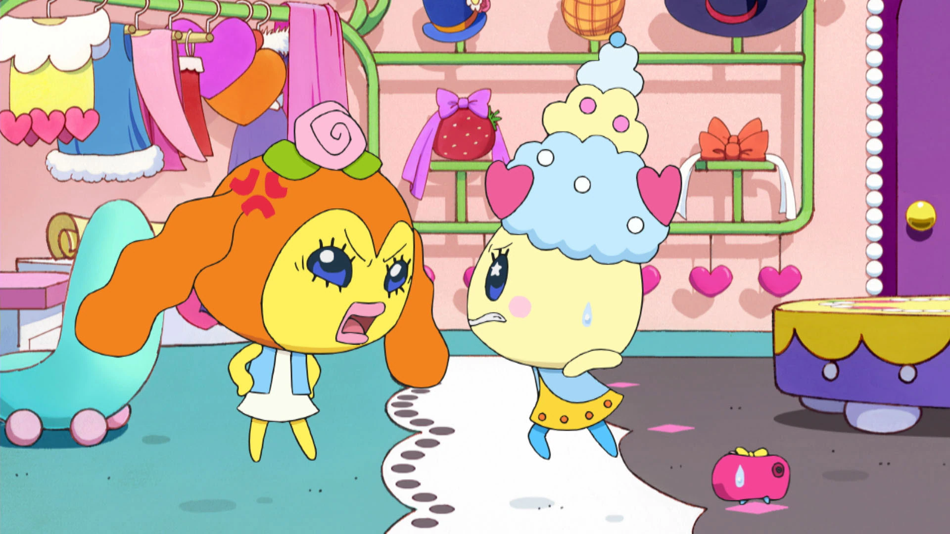 Pashalin often sits on the front bottom heart accessory on Moriritchi's head, similar to Telelin when she sits in Lovelitchi's heart bag. The heart she sits on is also the same heart that ending up giving Pashalin life.