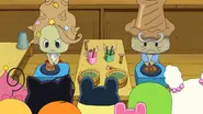 The two successfully make a copy of the original haniwa which pleases the Tama-friends. Upon realizing that they worked together without fighting, a mysterious plate appears above their house and pops out the Earth Tama Heart.