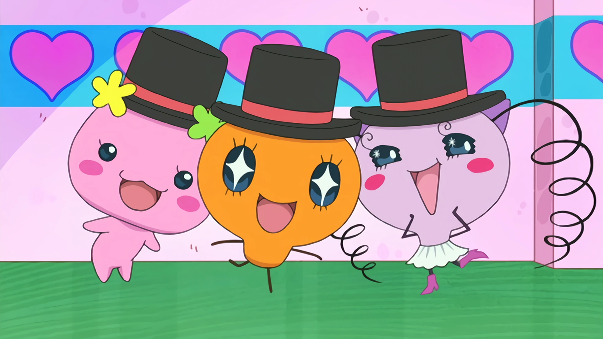 The fighting girls are interrupted by the sudden appearance of Flowertchi in Black Hat's costume, acting in character. She then switches to another villain's costume and continues acting until she notices Memetchi and Makiko looking close to tears. The two apologize for fighting in front of her and think she's acting as the villains to get their attention and make them stop. They offer her Lovelin's costume for snapping them out of the fight, but Flowertchi refuses, saying that she loves villains and only wants to be one. She switches to another villain's costume and Makiko finally understands what Flowertchi wants them to do: take passionate photos.