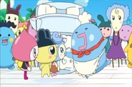 She returns again in "Bon! Bursting Fruitshake" to make fruit shakes with everyone at Gotchi King's party in his castle courtyard. She, along with Kuchipatchi and the Gotchi King, become emotionally affected by the strange fruits used to make the shakes and it's up to everyone to figure out how to return them to normal. In "All the Tama-Friends! Caroling", she appears at the Tamagotchi Preschool to help Mametchi and friends create treats for the preschoolers after they run out of cookies to give.