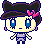 On his sprite from the Tamagotchi m!x, his stripes were a much lighter purple, with him able to pass down the color purple through mixing. These were made darker on the Tamagotchi Uni to reflect his official artwork depicting them as a dark periwinkle or pale-indigo.