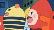 Shimashimatchi appears as one of Mametchi's classmates at Tamagotchi School. He appears in scenes taking place at Tamagotchi School and later appears at Mamemame Laboratory to watch Mametchi and friend's mission in space.