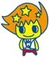 Sutaa (スター) is a Japanese pronunciation of star; he is named this for the stars in his hair and on his shirt.