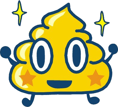 Super Unchikun resembles a large, sparkling, golden poo with arms, legs, a face, and star-shaped blushes.