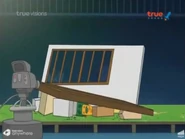 Everyone returns to the control room and Mametchi fixes up the main unit with the items. He pushes the lever, but the machine only powers up halfway before turning off again to Mametchi's dismay. Tomomi then remembers that her phone rang and was displaying the same signal as the main unit before time had froze. Mametchi looks at her phone and theorizes that its signal must have had an effect on the satellite's signal, causing it stop time because the time on Tomomi's phone was frozen. He asks Tomomi if he can use the phone to fix the signal, warning that it may destroy the phone in the process. Tomomi tells him to go ahead as she does not want to be trapped in frozen time forever.