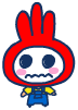 Tosakatchi has a light peach body, a red head with a white face, and frills atop of his head. He is usually seen with a squiggly mouth.