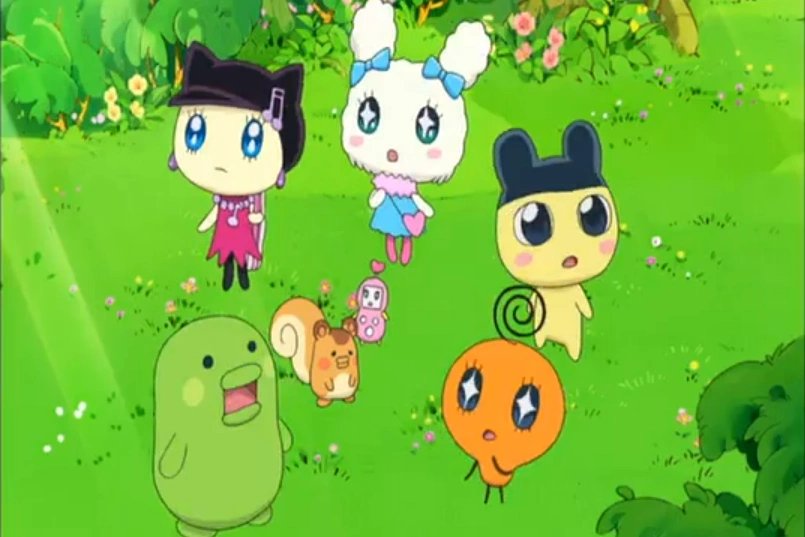 - The music notes that come out of Mametchi's machine resembles the music notes seen in the Happy Happy Harmony ending credits.