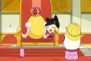 Instead of Lovelitchi, who suddenly got a job, Telelin decides to show Melodytchi around Tama Street. They end up entering Gotchi King's castle and get chased by soldiers.